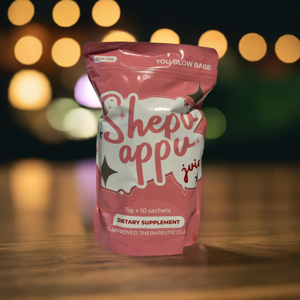 Shepu Appu Juice from You Glow Babe is a refreshing dietary supplement drink formulated to support weight management and skin radiance in one convenient glass. Each sachet blends key actives—L‑Carnitine, Garcinia Cambogia, Glutathione, and Sodium Ascorbate (Vitamin C)—into a lightly sweetened powder that dissolves easily in water.
